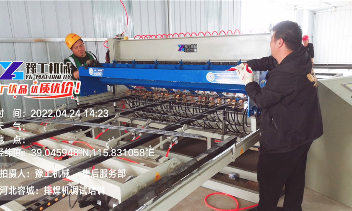 中鐵十一局雄安新區(qū)容西市政工程建設(shè)項(xiàng)目,客戶需要制作寬2米,長(zhǎng)6米,鋼絲直徑6-8mm,20個(gè)焊點(diǎn)的鋼筋網(wǎng)片,用于批量的建筑用鋼筋網(wǎng)片焊接??蛻艟暮Y選了4個(gè)廠家,提供設(shè)備方案,最終選擇豫工,是對(duì)我們專業(yè)能力和高性價(jià)比施工方案的高度認(rèn)可。針對(duì)客戶的施工要求,產(chǎn)品經(jīng)理并沒有推薦最高配置的排焊設(shè)備,而是提供了最適合客戶需求的高性價(jià)比設(shè)備方案:半自動(dòng)氣動(dòng)鋼筋網(wǎng)片排焊機(jī)+2立方左右空壓機(jī)+豫工17年經(jīng)驗(yàn)的專業(yè)服務(wù),因?yàn)檫@份想客戶之所想的合作誠(chéng)意,最終贏得客戶青睞。試機(jī)過(guò)程中,設(shè)備通過(guò)氣動(dòng)下壓的焊接方式,焊接壓力均勻,焊點(diǎn)牢固、穩(wěn)定,焊接速度快,可以達(dá)到40排/分鐘。