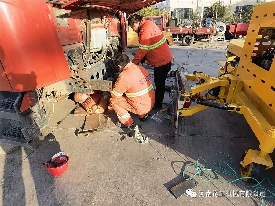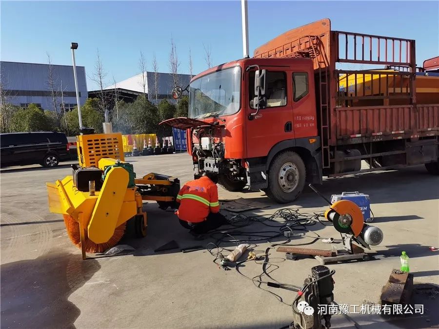 11月10日,在設(shè)備到達(dá)客戶工地的同時(shí),豫工技術(shù)支持部劉工一早到達(dá)客戶工地。由于客戶訂購(gòu)的是自帶動(dòng)力的雪滾系列,安裝調(diào)試相對(duì)比較簡(jiǎn)單,拆下保險(xiǎn)杠 安裝支架 連接電源線,即完成調(diào)試工作。