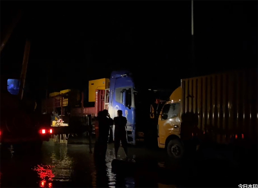安裝調(diào)試一直持續(xù)到晚上,遭遇暴雨來(lái)襲,豫工技術(shù)員堅(jiān)守一線,與抗洪人員一道,全力以赴,通宵奮戰(zhàn),保證5臺(tái)防汛泵車全部投入工作,第一時(shí)間開(kāi)始執(zhí)行防汛吸水任務(wù)!